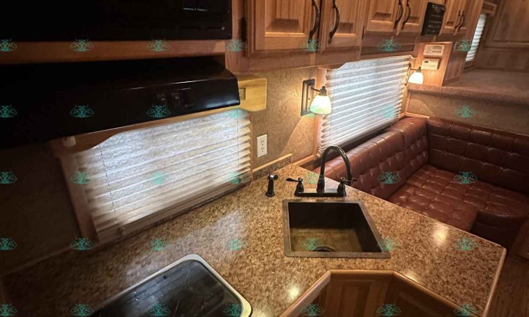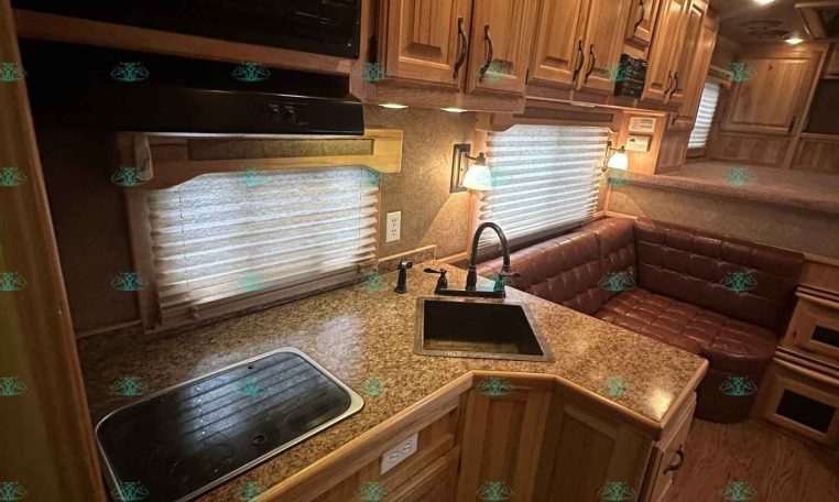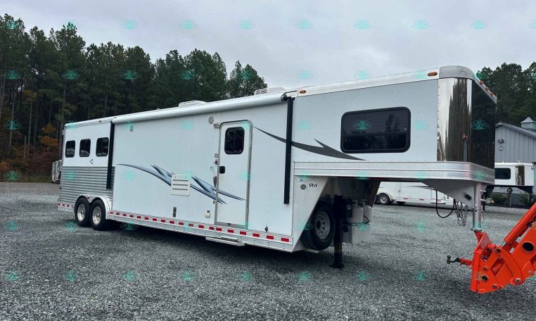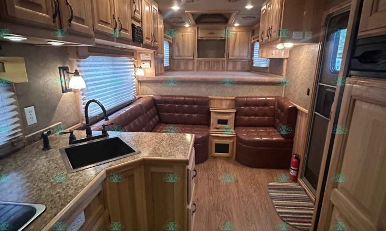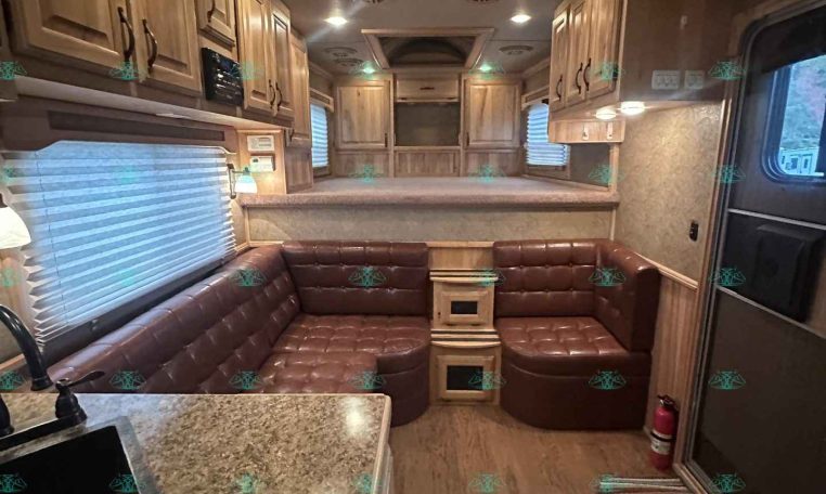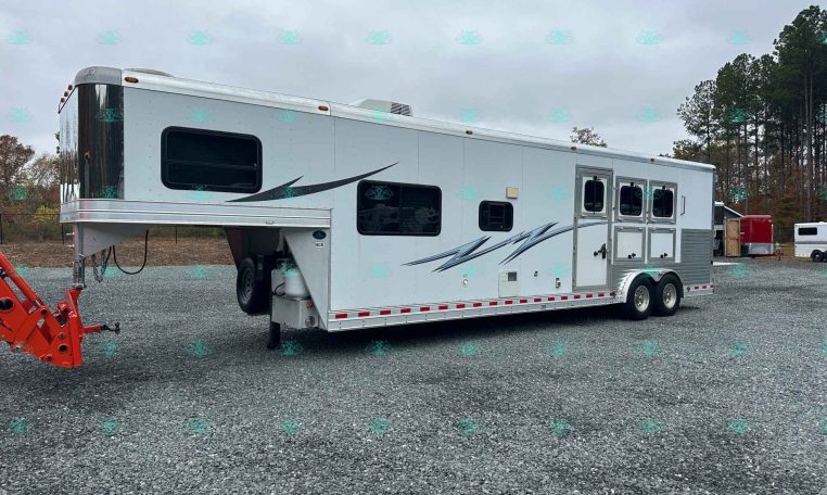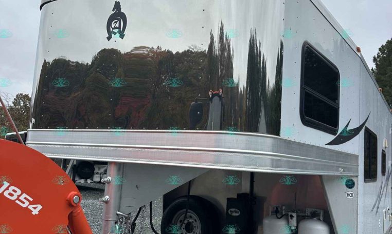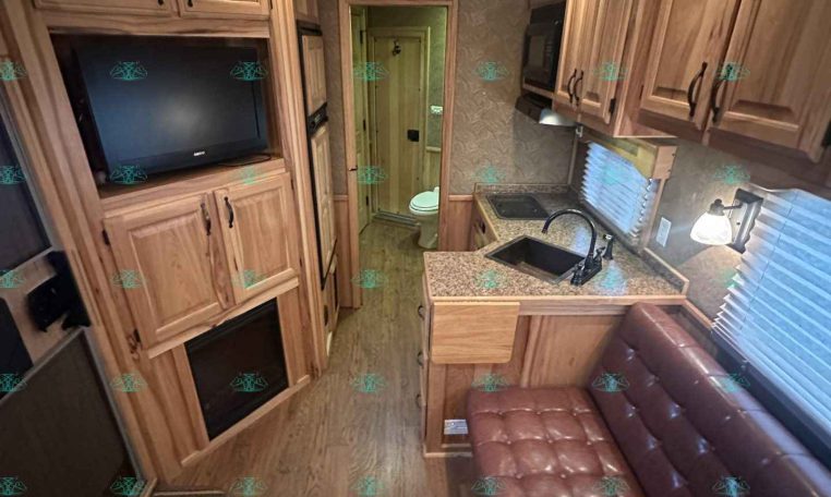 This one is loaded with premium features like a rear kitchen layout, big walk-in closet, fireplace, power awning, and a poured WERM floor in the horse area. It’s a solid, well-kept trailer built to last.
