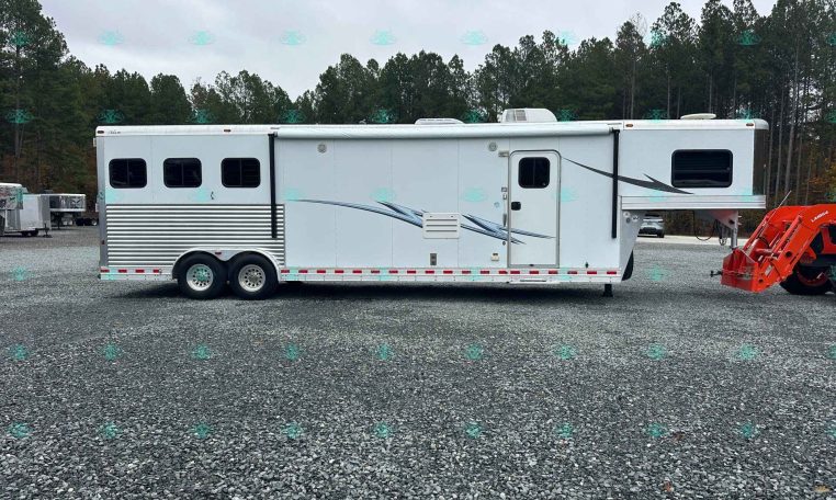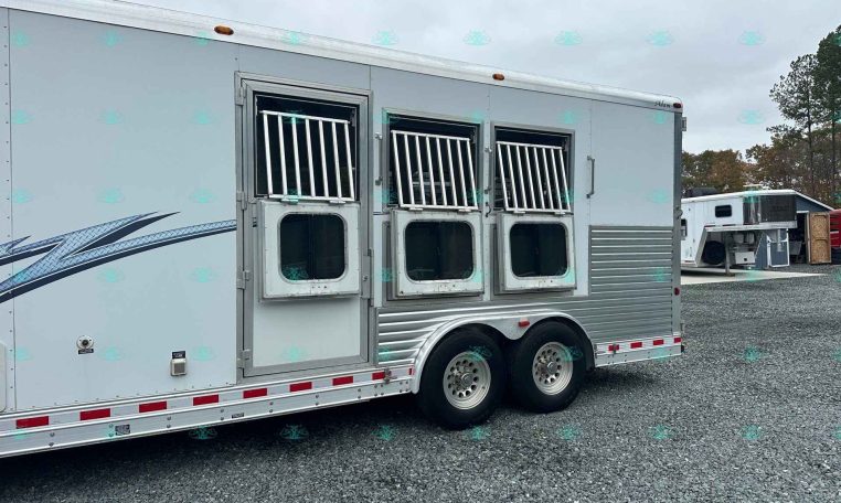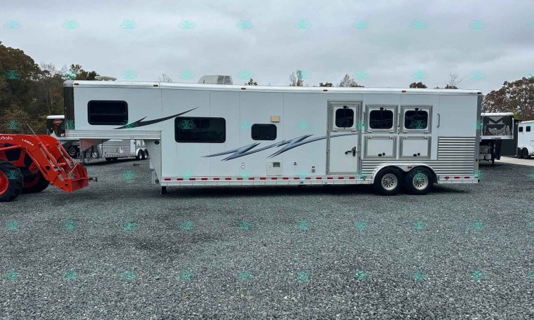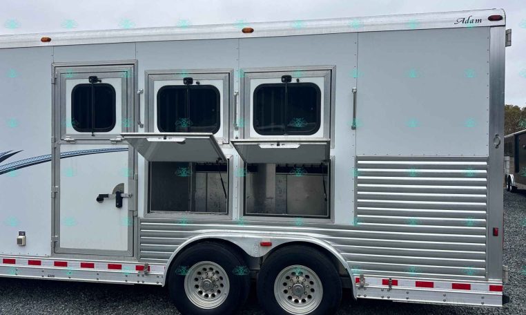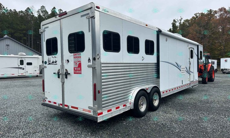 Plus Taxes & Licensing2010 Adam 8314 – 3 Horse Slant with 14′ LQ, 8′ Tall, Rear Kitchen & Hickory Wood Interior