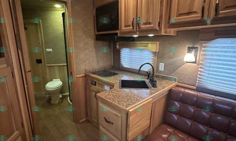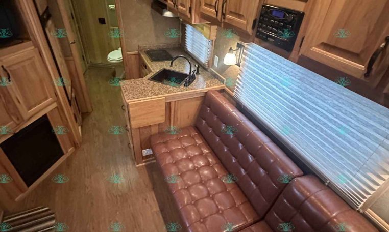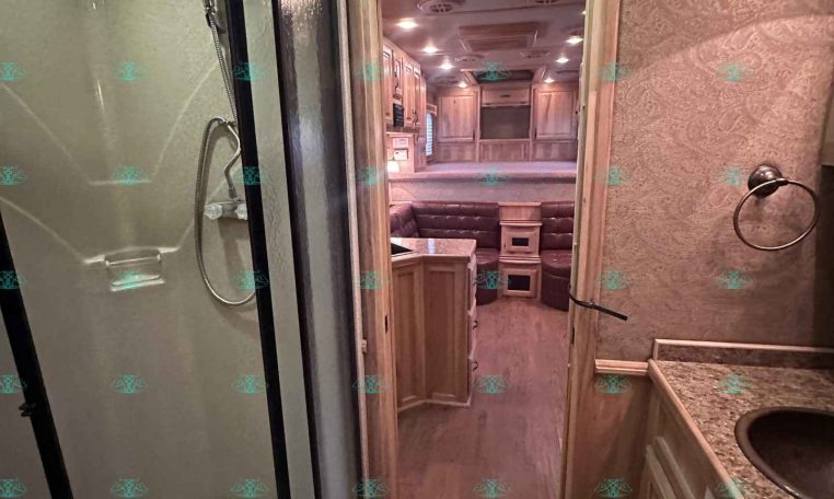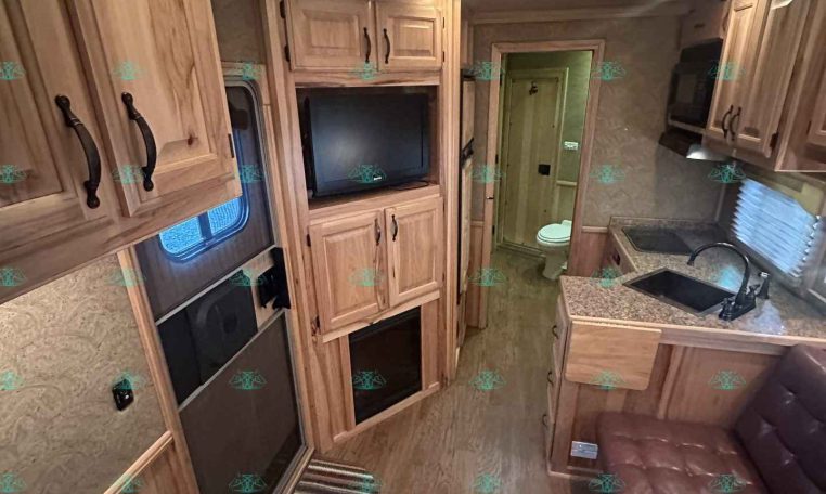 This Adam 8314 is an ideal setup for riders who want a roomy layout and beautiful real-wood cabinetry with all the comforts of home. The 8’ tall interior and large walk-in closet add an extra touch of luxury and practicality.