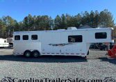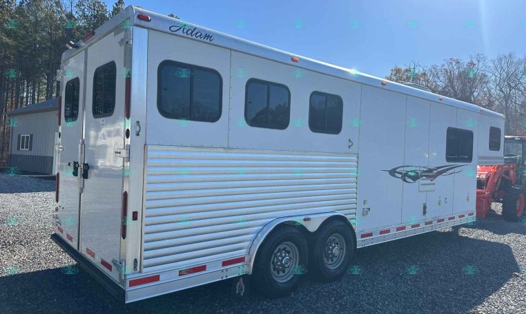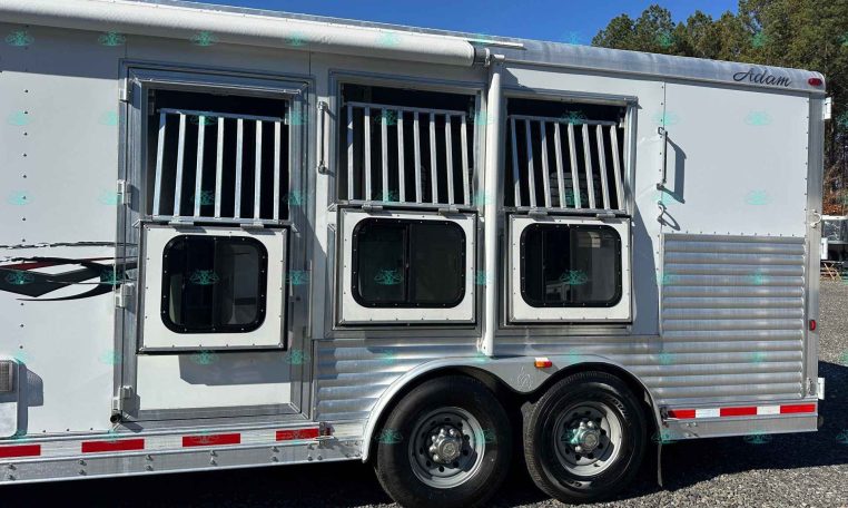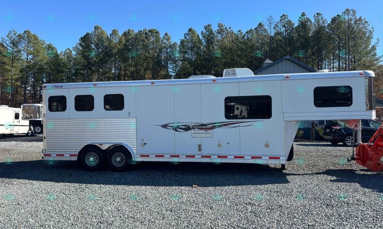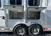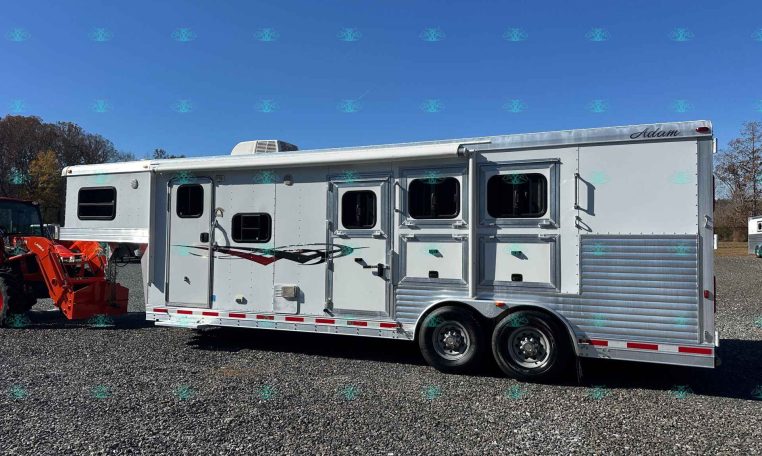 This 2014 Adam 8310 3 Horse Trailer is the perfect size for anyone wanting full LQ comfort without going oversized. Built all-aluminum with a 10′ short wall living quarters, this trailer features a Gunslinger interior with beautiful real hickory cabinetry, a dinette that makes a bed, and a spacious rear tack setup. It’s been lightly used by one owner and is in excellent condition—ready for its next adventure.
