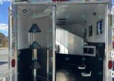 Equipped with a 4’5″ short wall, this trailer includes sleeping space, a microwave, fridge, and air conditioning—everything you need for a comfortable overnight stay at shows, rodeos, or the trailhead.
