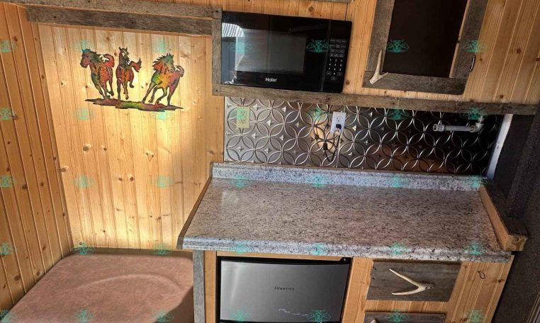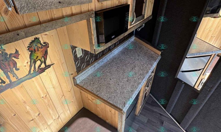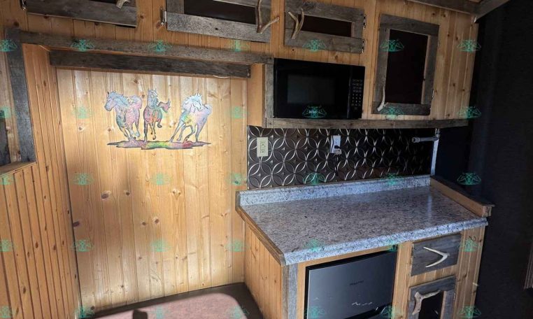 Equipped with a 4’5″ short wall, this trailer includes sleeping space, a microwave, fridge, and air conditioning—everything you need for a comfortable overnight stay at shows, rodeos, or the trailhead.