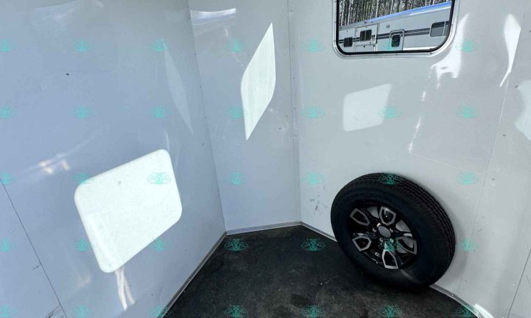 It features drop-down windows with bars and screens, a fold-up rear tack, and durable Rumber flooring for long-lasting performance.