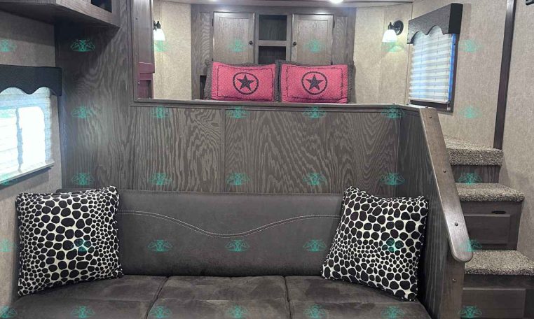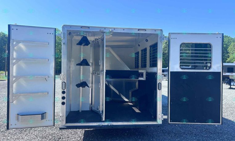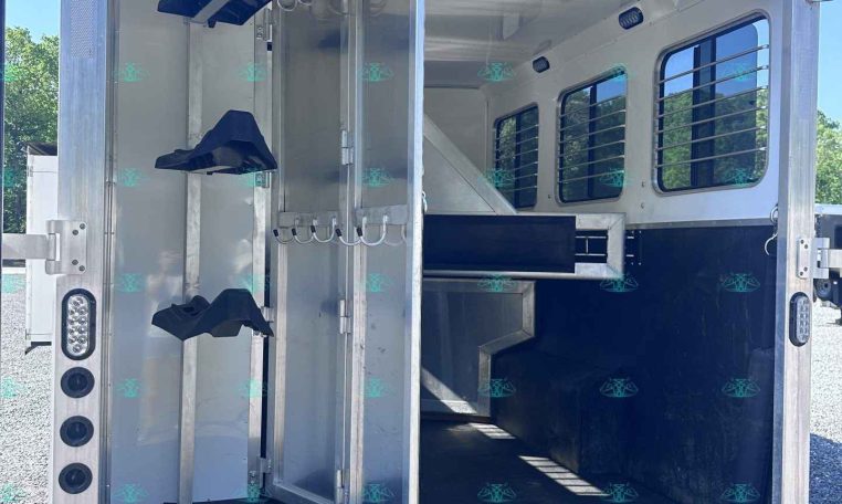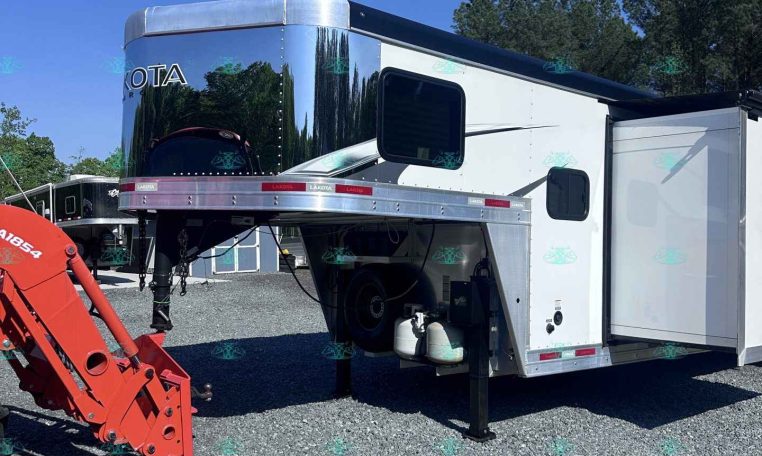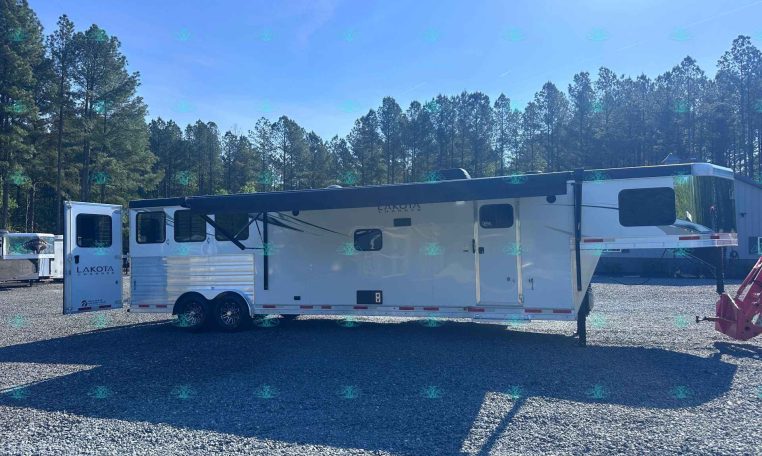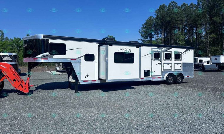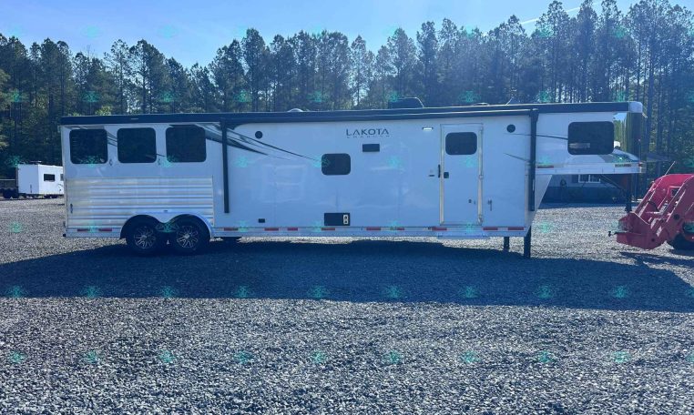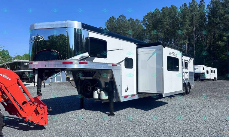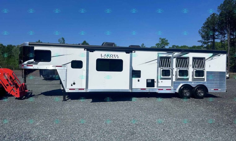 This Pre-Owned 2022 Lakota 8315 SR Charger is a 3 horse slant load gooseneck trailer with a spacious 15′ living quarters and slide-out. This one-owner trailer is in like-new condition and offers a wide-open layout with plenty of seating and storage.