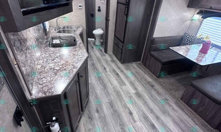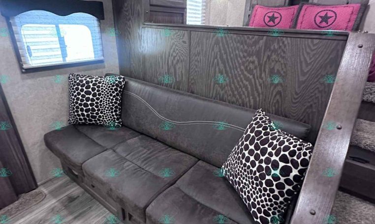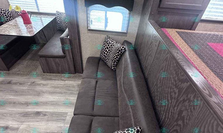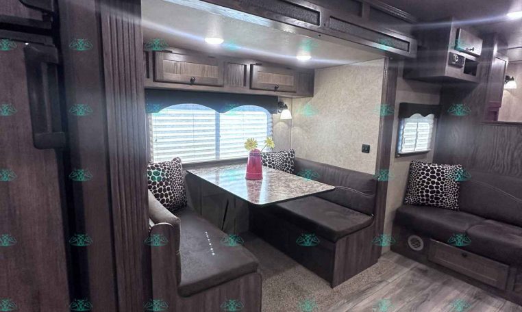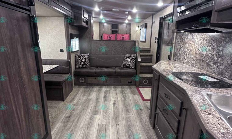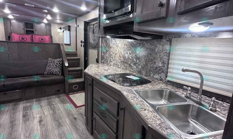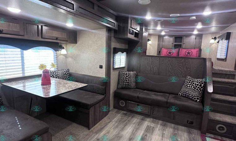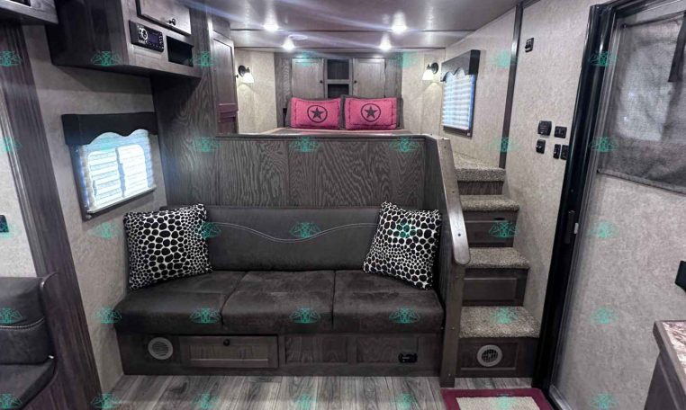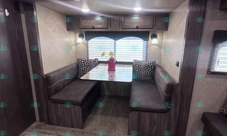 Inside, you’ll find both a dinette and sofa that convert into beds, making it easy to sleep up to 4 people. With a large kitchen, roomy bathroom, and comfortable living space, this trailer is perfect for shows, travel, or weekend trips.