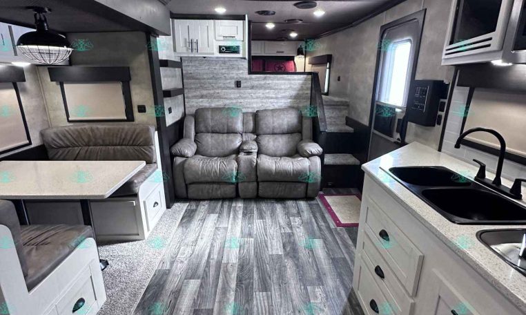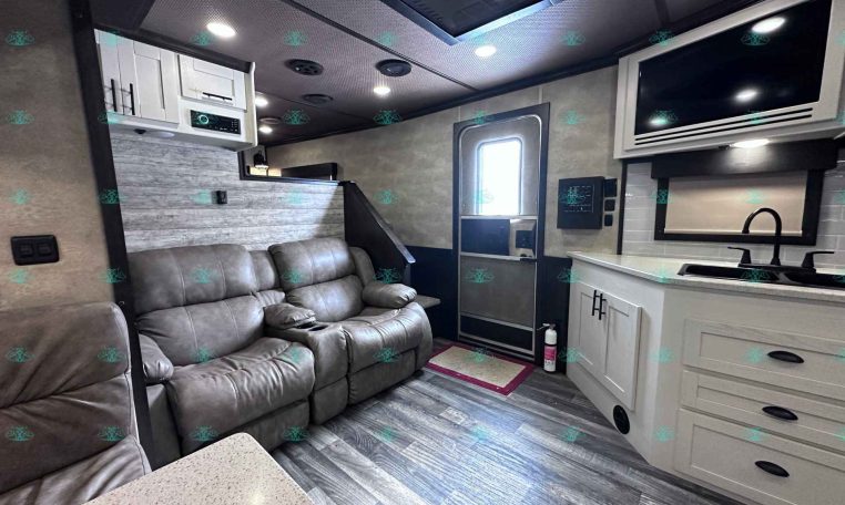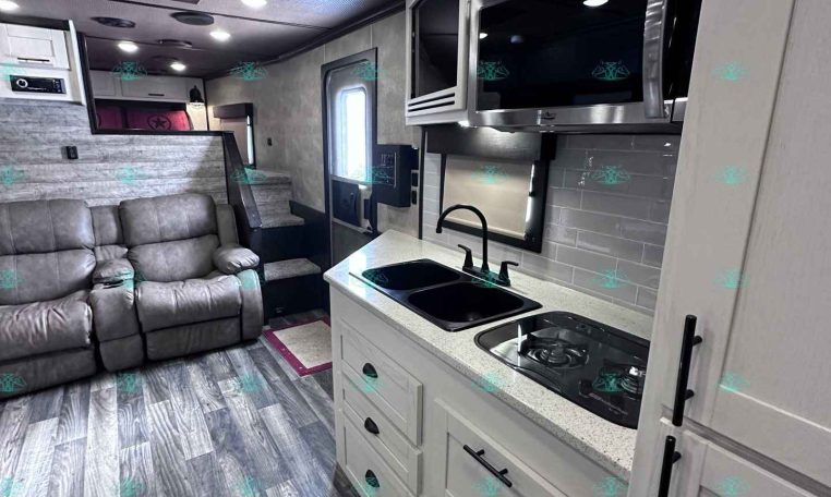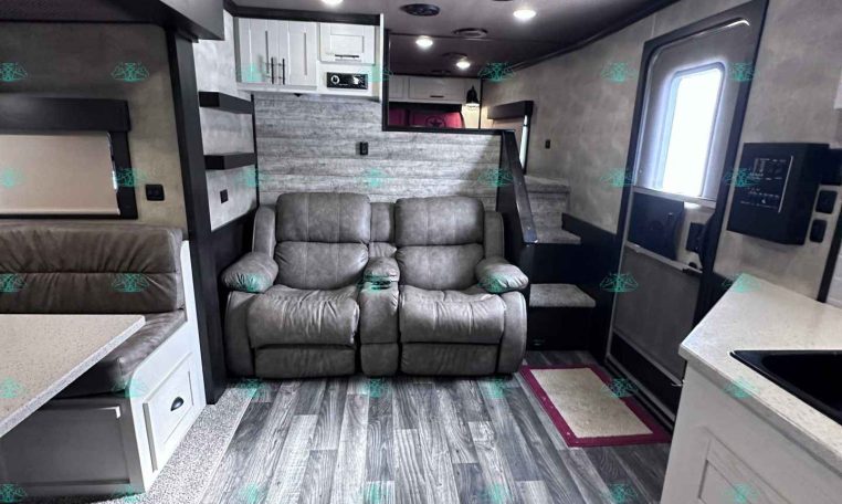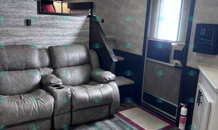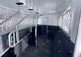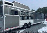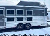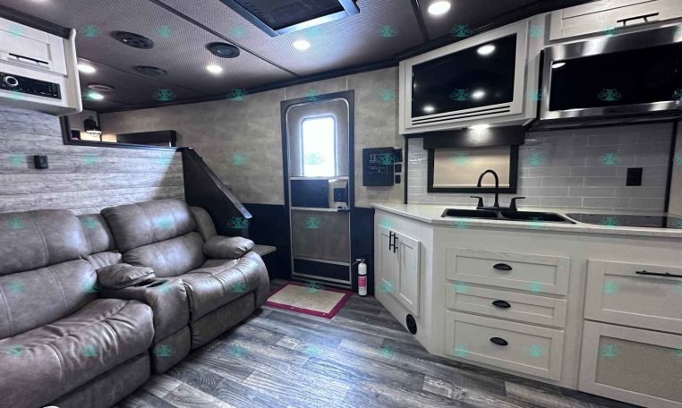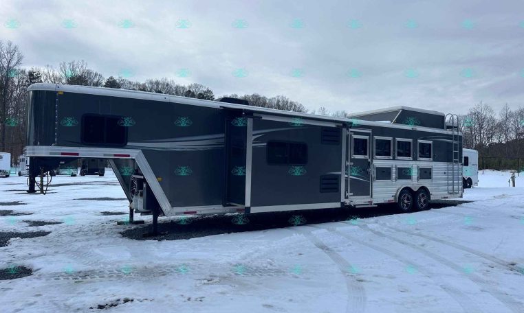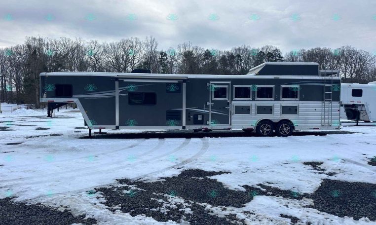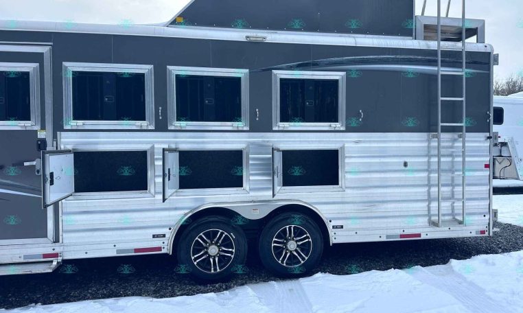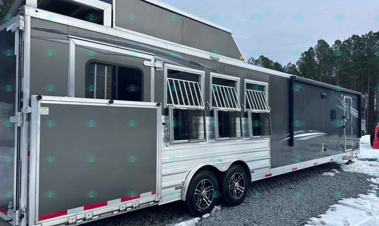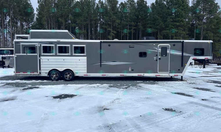 The spacious 17′ living quarters include a large 9′ slide-out, recliners, dinette, big kitchen, and a luxury bathroom. Paired with a 4 horse side load configuration, full rear tack, and a hay pod, this trailer is ideal for riders who need comfort on the road and efficient space in the barn.