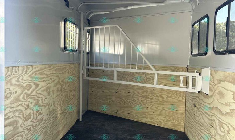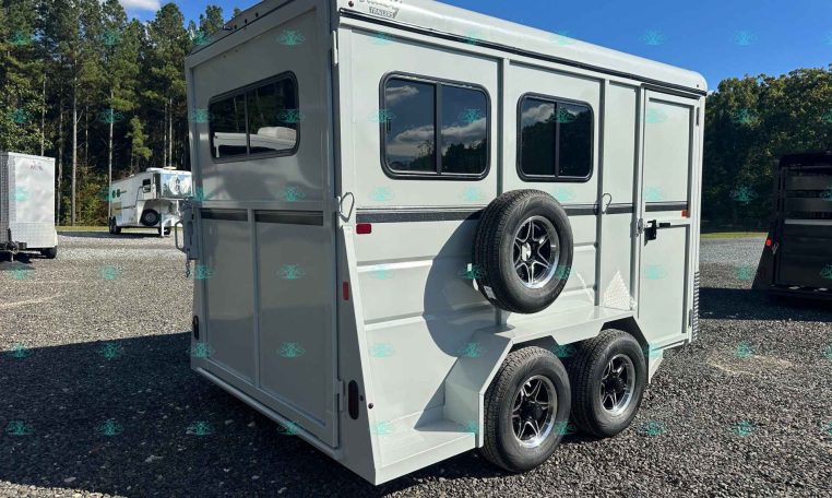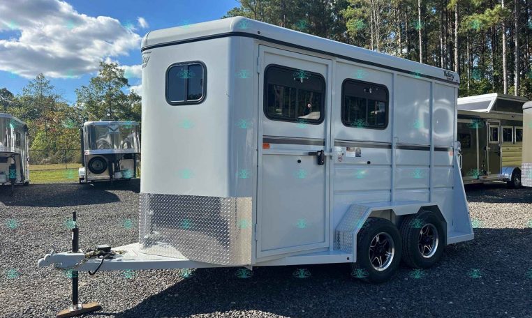 - Model: 2820 Two-Horse Thoroughbred Slant Bumperpull Trailer 6’8″ X 14′ x 7’6″Tall + Aluminum Wheels