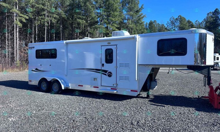 Plus Taxes & LicensingLooking for a compact and lightweight 3 horse trailer with full living quarters? This Pre-Owned 2022 Shadow 69220S-3SL-GN-E-LQ model is an ideal match. All-aluminum construction means it’s built to last and easy to tow. The trailer features a small hydraulic slide-out that creates extra space inside the living quarters while still staying maneuverable and practical. It’s been gently used, is super clean, and ready to hit the road.