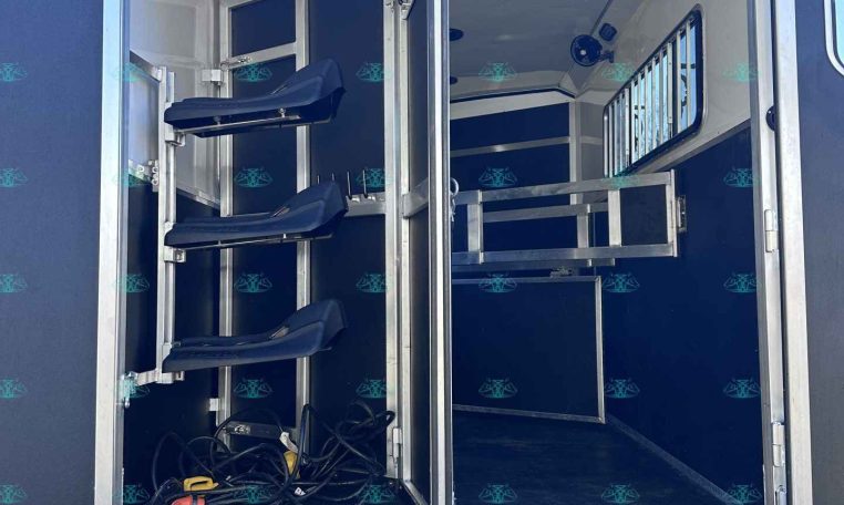 Tack Room: Collapsible rear tack with swing-out saddle rack