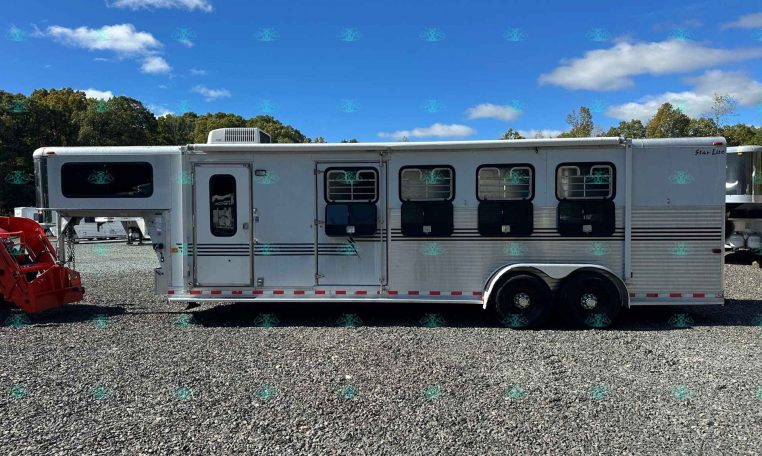 This Pre-Owned 2001 Silver Star Star Lite is a 4 horse slant load trailer with an 8’ full living quarters setup, offering comfort, storage, and convenience at an affordable price. Built all-aluminum and equipped with a hydraulic jack, this trailer is easy to haul and perfect for weekend trips or show circuits.
