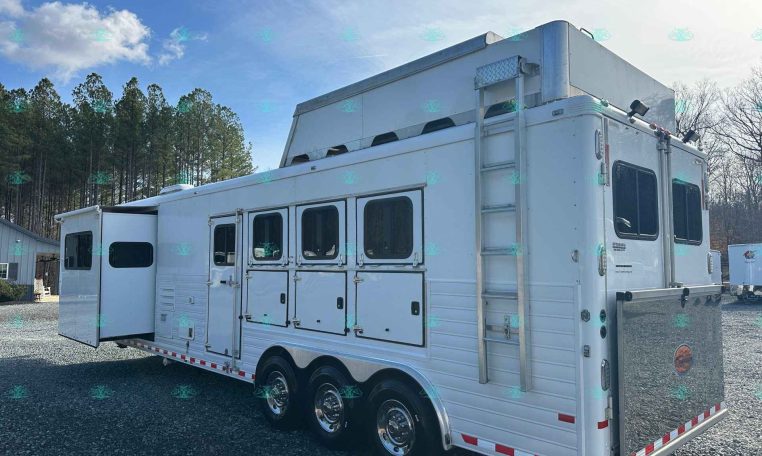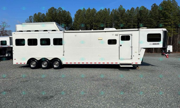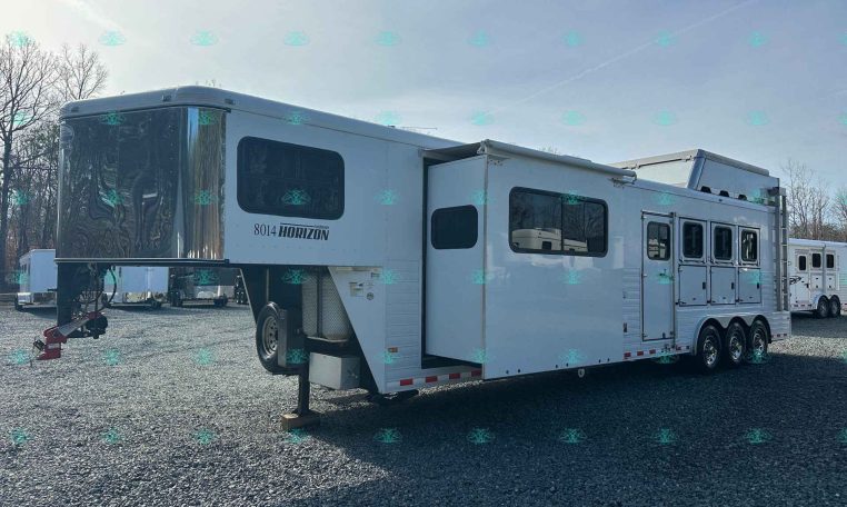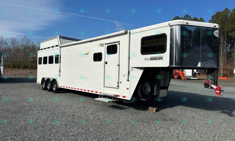 2010 Sundowner 8014 Horizon – 4 Horse Slant with 14′ Living Quarters, Hay Pod, and Rear Ramp