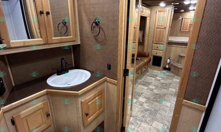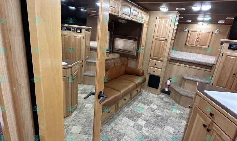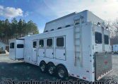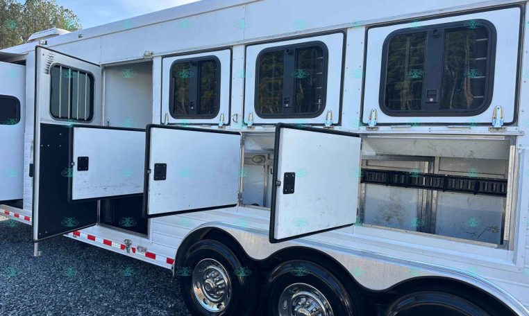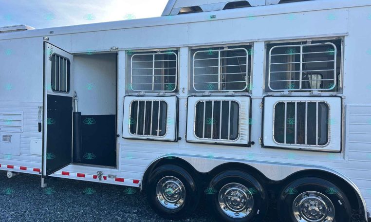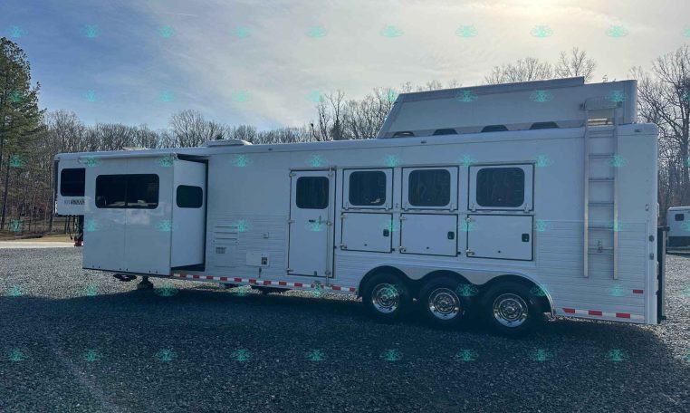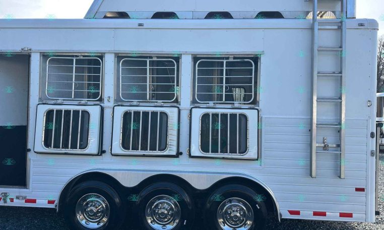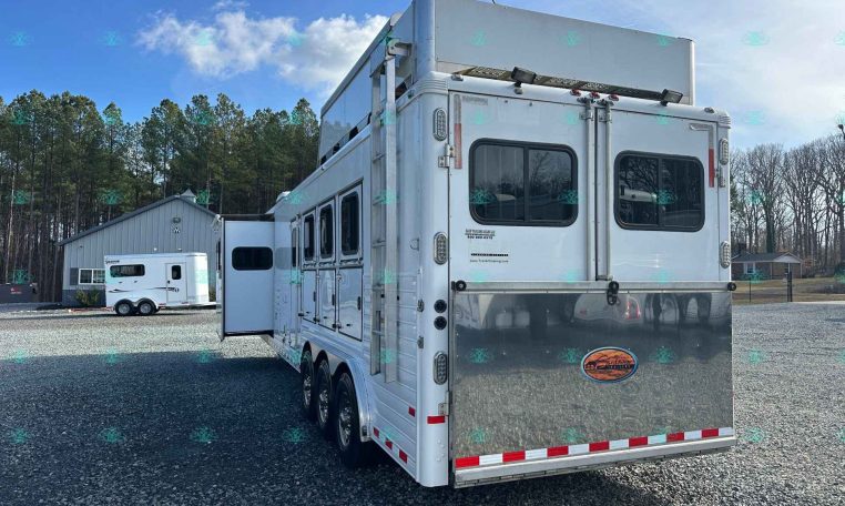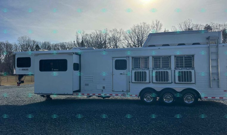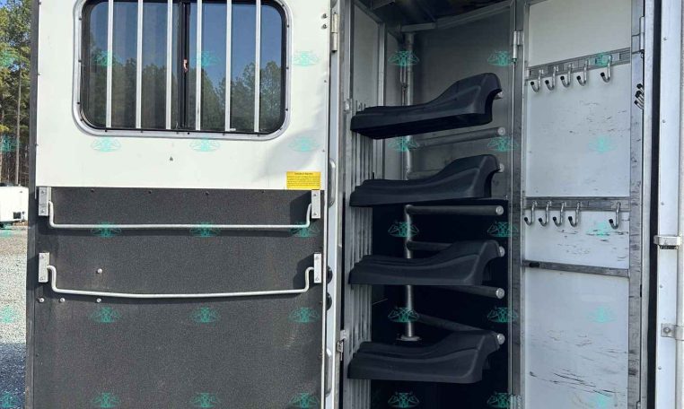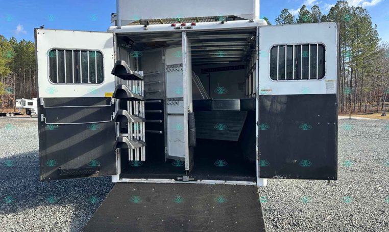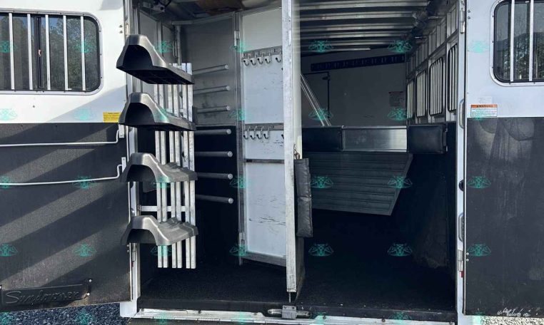 This 2010 Sundowner 8014 Horizon is a well-maintained, one-owner 4 horse trailer with a spacious 14′ living quarters. It’s 8 feet wide and 8 feet tall, making it ideal for hauling large horses comfortably. The roomy stalls, rear ramp, and hay pod with extension ladder make loading and hauling smooth and efficient.