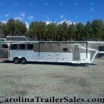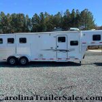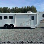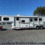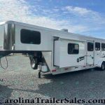 Inside the LQ, you’ll find a cozy space with a sofa sleeper, AC, propane heat, cooktop, microwave, and a full bathroom with a shower and toilet. The horse area is just as functional with drop windows, padded dividers, rear tack, escape door, and fresh water tank and pump for convenience on the road.