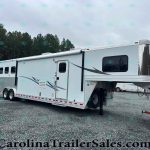 This one is loaded with premium features like a rear kitchen layout, big walk-in closet, fireplace, power awning, and a poured WERM floor in the horse area. It’s a solid, well-kept trailer built to last.